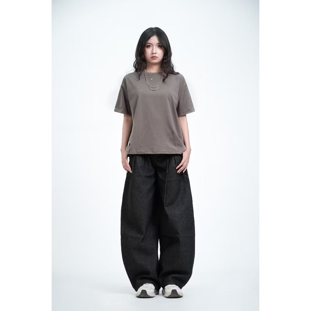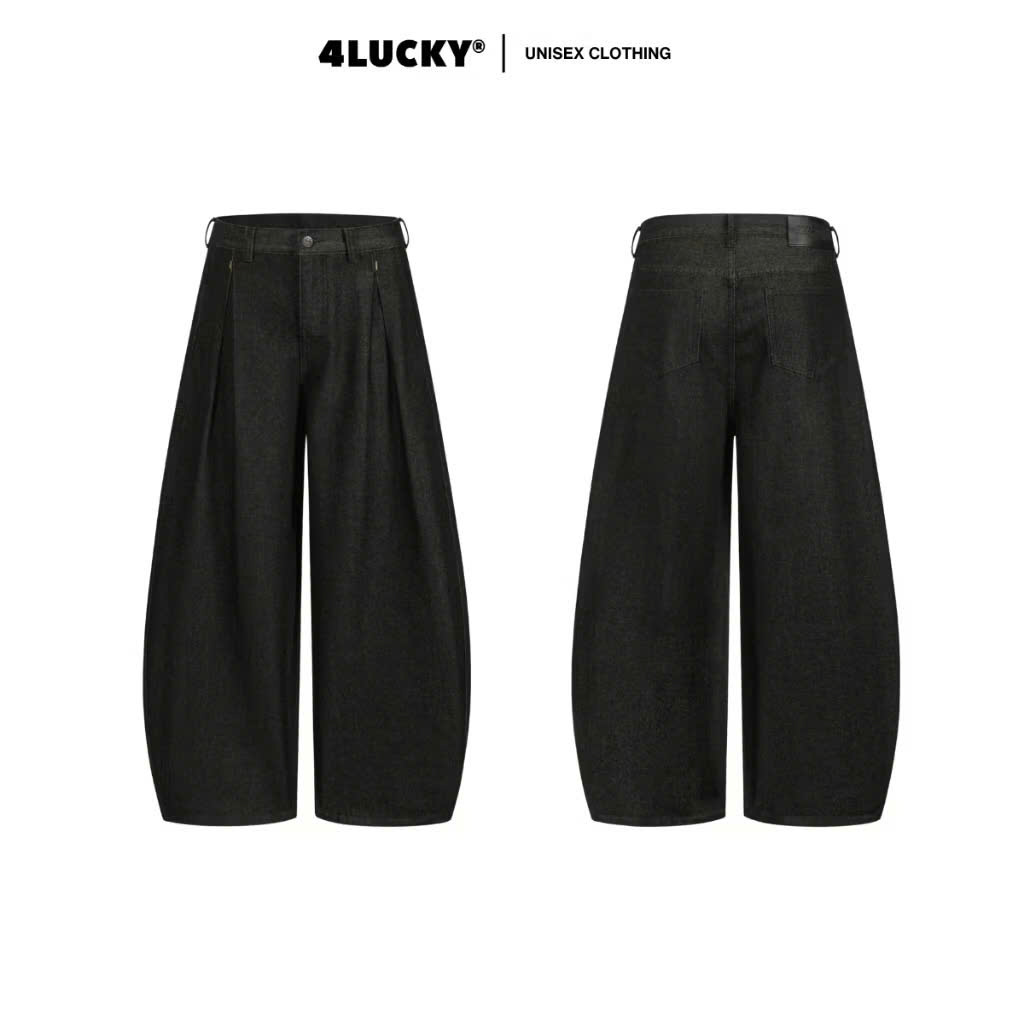 Quần Jean Unisex Chiết Ben Ống Rộng 4Lucky 6223, Quần Jean Ống Cong Màu Đen Siêu Chất Streetstyle